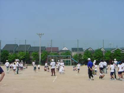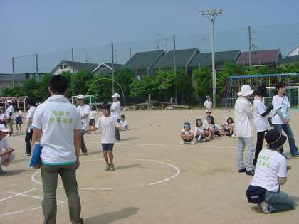 6年生の選手宣誓の後,準備体操をして,始まりました。