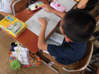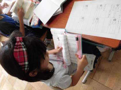 子どもたちは,出された課題の文字について,一生懸命に辞書を引いていました。