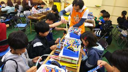 吹き戻しの里で吹き戻しづくりの体験をしました。裏技を教えてもらった人もいます。