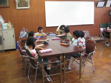 1年生から6年生までの児童が一つのグループで顔を合わせ,グループごとにお友達の名前を覚えたり,グループのめあてを考えたりしました。そのあと,名前当てクイズや簡単なゲームをするグループもありました。高学年の人が,低学年をリードしてくれていました。