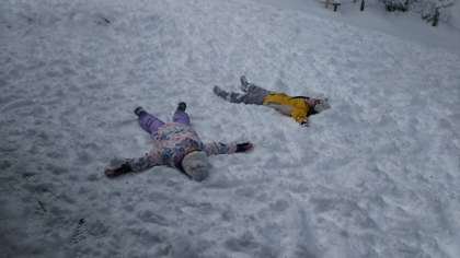 今は雪は降っておらず活動しやすい状況です。楽しそうに雪の上に寝転がる子どももいて,雪の世界を満喫しています。