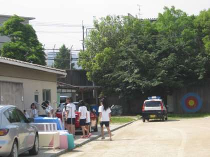 1校時からプール清掃を始めています。雑草を抜いたりプール用具を運んだりしています。