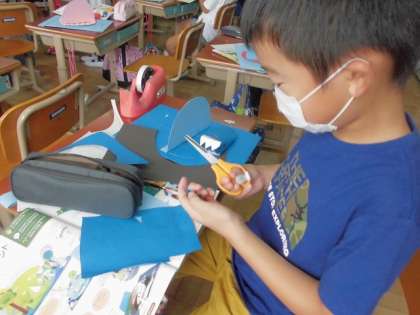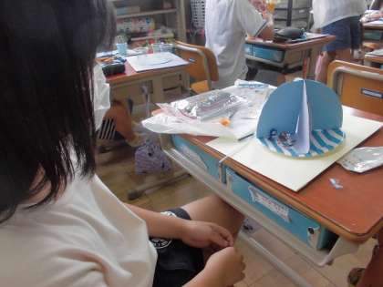 台紙に好きな画用紙を貼ったり,割りピンで土台部分がくるくると回るように作ったりしました。