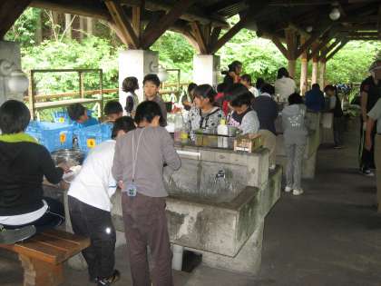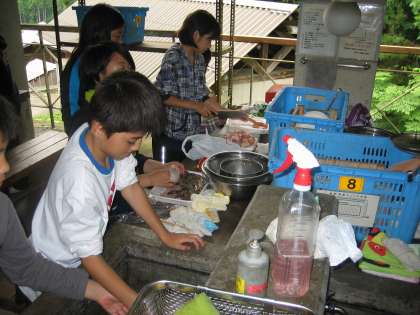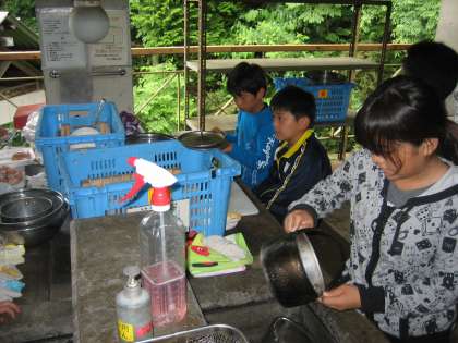 野外炊事の準備