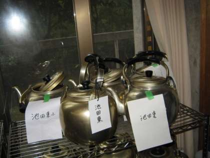 お風呂から上がり楽しみにしていた夕食です。お茶もたくさん飲みます。