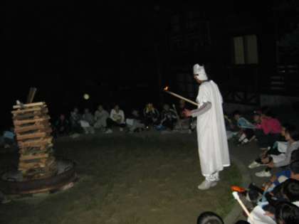 空も少しずつ暗くなり,キャンプファイアーが始まりました。