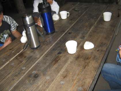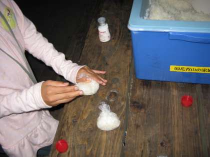 朝食は,自分たちで作ったおにぎりです。のりを巻いて一人1〜3個食べました。