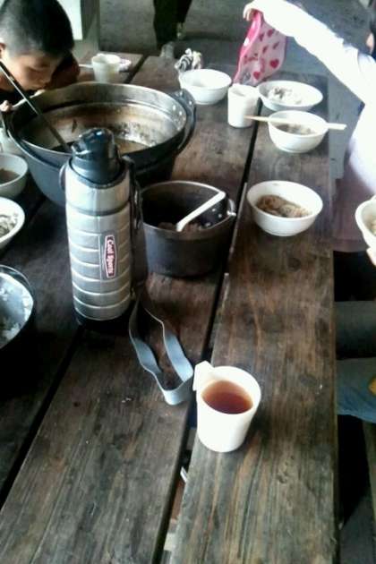 自分たちで苦労して作った「鶏すきやき」や「ご飯」の味は格別でしょう。