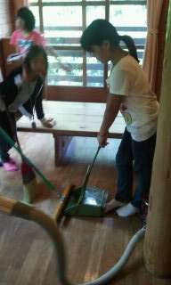 朝食の後、掃除です。来た時よりも美しく!