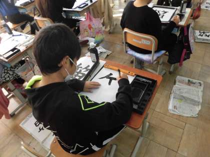 書写の学習で,『笛』という文字を毛筆でかきました。