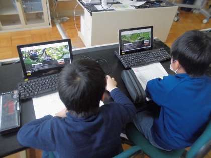 教室で資料を見て調べるチームと,パソコンルームでインターネット検索を自分で行って調べるチームに分かれて調べました。