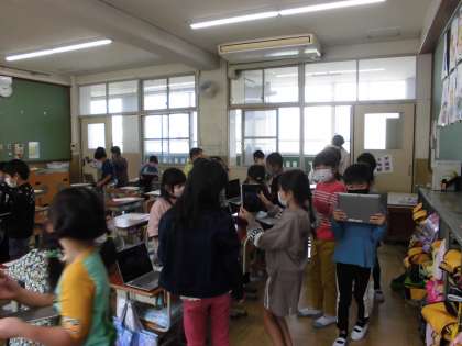 タブレットのカメラ機能を使って学習をしました。教室の中で好きなものを写しました。次の日は,校舎内をまわり,自分で気がついたものを撮影しました。