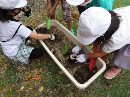 総合的な学習の時間では京野菜について学習しています。「自分たちでも京野菜を育ててみよう!」ということで,「加茂なす」と「万願寺とうがらし」の苗植えを行いました。自分たちで水やりをおこない,7月に収穫予定です。たくさん実がなるように頑張って育ててほしいです。