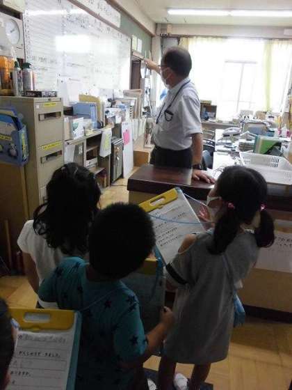 部屋調べでは,インタビューをしたことをプリントにメモをしていきます。まだ字に慣れていないみんなは,先生たちに教えてもらったり,絵でかいたりして,見たもの聞いたものを頑張ってメモしていきました。