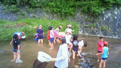 花脊の水は冷たいです。ただこれだけの子どもが入ったら,魚も逃げちゃう?