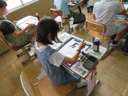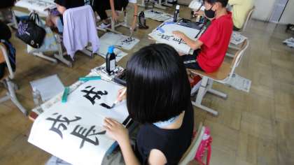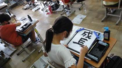 久しぶりに毛筆を行いました。今回は「成長」という2文字でしたが,それぞれの漢字の形が難しい上,2つの字のバランスも難しく,何度も何度も練習する様子が見られました。