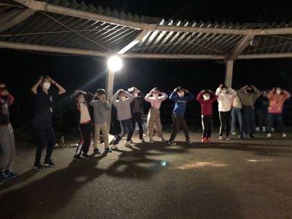 レクリエーション係のメンバーの活躍で,楽しく盛り上がったキャンプファイヤーになりました。