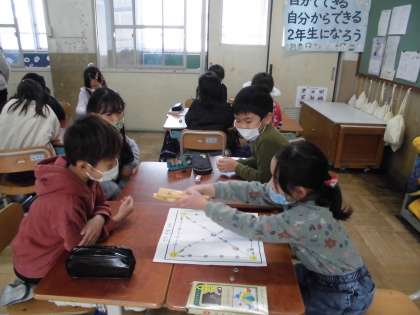 韓国・朝鮮の食べ物や遊びの学習をしました。その中で,ユンノリを使って遊びました。