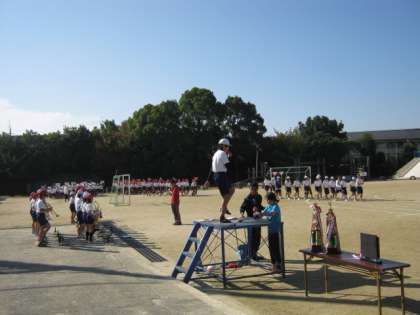 本日1・2校時に全校練習をしました。前回と同じように入場行進の練習から始めました。
