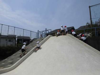 今,体育の時間には 並び方 おにごっこ 遊具を使った遊びをしています。子どもたちは元気いっぱい体を動かしています。