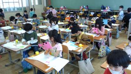 図工の時間に,はさみとのりを使って学習しました。