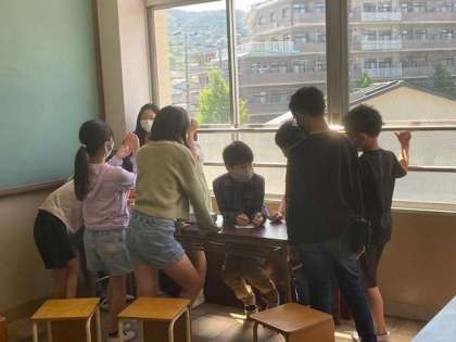 自分が学年のために何が出来るのか。人前で話すことが得意な子はナレーター。モノ作りが好きな子は小道具づくり。音楽が得意な子は替え歌づくり等それぞれの得意分野を活かし,自分の役割を責任をもって取り組んでほしいと思います。