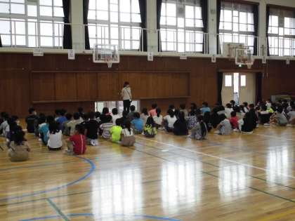 今日は,担当の先生からたてわり掃除での心構えを聞いたり,実際にたてわり班で集まって,高学年の子から掃除の説明を聞いたりしました。