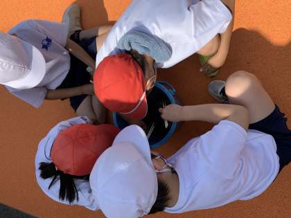 5・6時間目にヤゴとりをしました。朝は少し雨が降っていたのですが,天気にも恵まれ,プールサイドで行いました。たくさん見つかり,子どもたちも満足そうでした。虫が苦手な子も,割りばしで泥の中を探し,動く虫をたくさん見つける姿が立派でした。