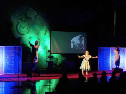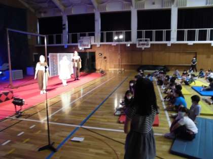 本日,劇団「かかし座」さんの影絵劇「ふしぎの国のアリス」の鑑賞会がありました。影絵だけではなく,歌や踊りもありの劇で,子どもたちはとても楽しそうに鑑賞していました。また,お家でもどのような内容だったのか,お話を聞いてみてください。