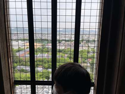 内部の仕組みや展示物にも興味を示しています!よい景色も見えています。