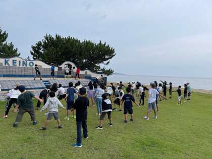 少し寝られなかった人もいるようですが、みんな元気です。朝の体操の様子です。