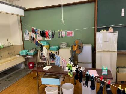 普段は洗濯機でする洗濯も,手洗いすることで,洗濯の手順や,洗剤の量が分かったようなので,これからの生活に生かしてほしいです,