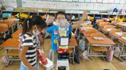 生活科の「あそんでためしてくふうして」の単元で,いろいろな廃材を積んだり,並べたり,ころがしたりしてみました。「どうしたら高く積めるかな?」「下の方に大きい箱を積んだらいい!」「トイレットペーパーの芯も使ってみよう。」と,試行錯誤しながら活動しました。よく考えている姿がたくさん見られ,みんな夢中になって取り組みました。