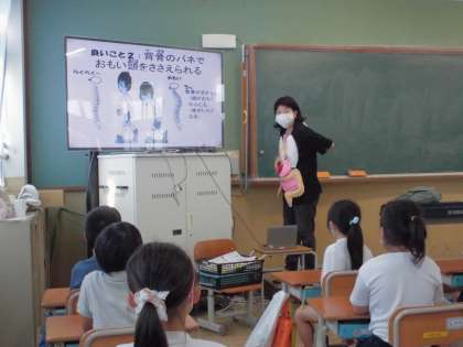 「なぜ 良い姿勢をするのか」ということを模型やパワーポイントを利用して教えてもらいました。