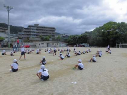 4年生との合同練習が始まっています。昨年度のソーラン節を経験している4年生の踊りはダイナミックで迫力があります。手足の伸ばし方や腰の落とし方が少し違うだけで,大きく踊りが変わります。3年生の前に,4年生に立ってもらい,見本になってもらいながら動きを真似して踊りました!