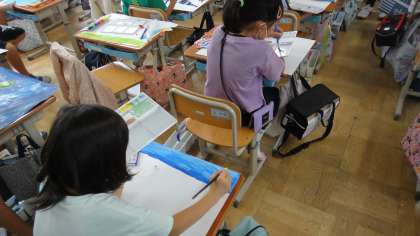 2年生 お話の絵をかいています