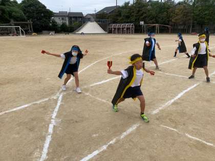 運動会に向けての練習が大詰めになってきました。運動会前日が雨模様になるとの予報のため,1日早くにリハーサルを行いました。本番と同じはっぴを羽織りハチマキを巻くと子どもたちの表情もきりっと引き締まります。これまでの演技で一番かっこいい踊りを見せてくれました。本番が待ちきれません。