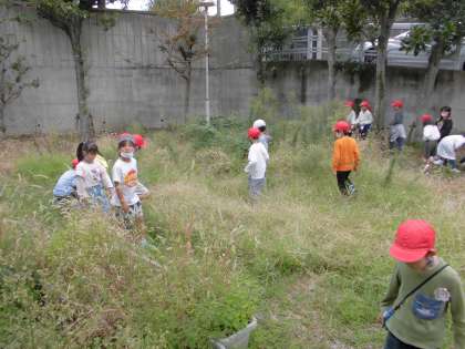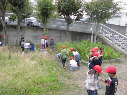 生活科「いきものと なかよし」の時間に虫さがしをしました。少し涼しくなっていて見つかるかどうかが心配でしたが、コオロギ・カマキリ・バッタなど見つけられました。