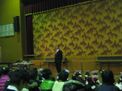 9時30分過ぎに校長先生の話から始まり,1年生が「はじめの言葉」を言いました。1年生の「はじめの言葉」は「笑っていいとも」のパロディでしたね。