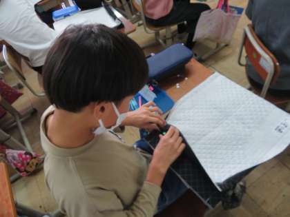 初めてのミシンでしたが,操作方法を確認しながら,返しぬいも忘れないように,頑張って製作することができました。