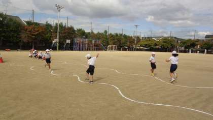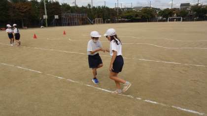 運動会が終わり,体育では「とびあそび」の学習に入りました。どんじゃんけんをしたり,ゴムを跳び越えたり,ルールを守って取り組みました。高くとべたことが嬉しかったようで,何度も何度も挑戦しました。