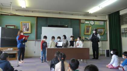 2時間目に防犯教室があり,アルソックの方から話を聞きました。知らない人に声をかけられたらどうするか,グループごとに考えました。どんな人についていったらいけないか考えると,「優しそうでもついていってはいけない。」「知らない人にはついていかない。」と身を守るためにしっかり考えることができました。