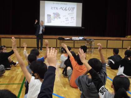 今日は,KDDIから講師の方に来ていただき,スマホケータイ安全教室を行っていただきました。
