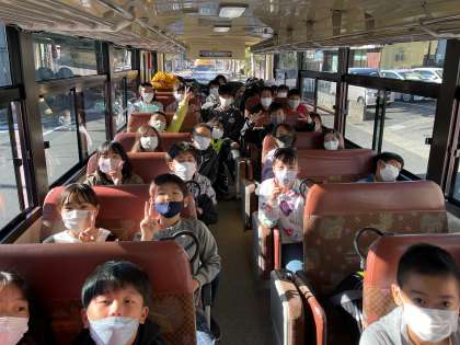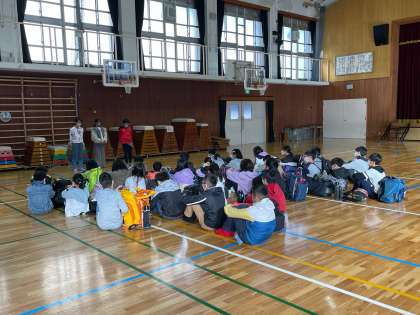 朝から本当に雲一つない青空です。出発式では、学年の目標や今回の宿泊学習の目標を確認しました。安全に楽しんでほしいと思います。