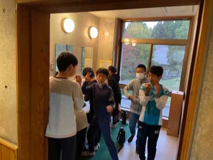 おはようございます!6:00に起きて、早速洗面と片付けを協力して行っています!
