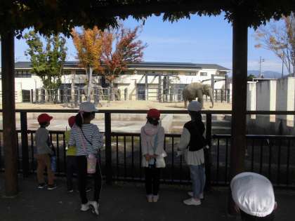 本日、京都市動物園に、1年生と2年生合同で秋の遠足に行きました。動物園では、グループでウォークラリーをし、2年生が1年生と行くところを話し合いながら、一生懸命ポイントをまわっている姿が頼もしかったです。お昼のお弁当は、かわいいポテトや大好物が入っていて、喜んで食べていました。お弁当の後は、学年で、京都の森や室内ブースを回りました。長い距離の移動でしたが、子どもたちは楽しんで活動することができました。