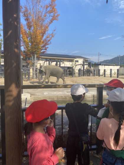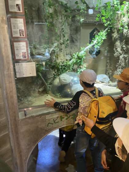 ウォークラリーの後,午後はクラスごとに京都の森や,コウモリ・ワニなどを見に行きました。普段は見れない動物たちに会えて楽しそうでした。
