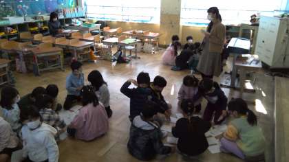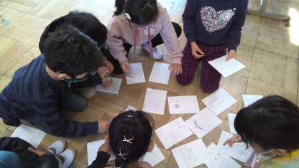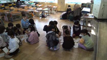 読書週間の取組として、図書委員会が中間休みに「読書カルタ」をしてくれました。本の題名を聞き、絵を選ぶ「読書カルタ」を子どもたちは楽しんでいました。