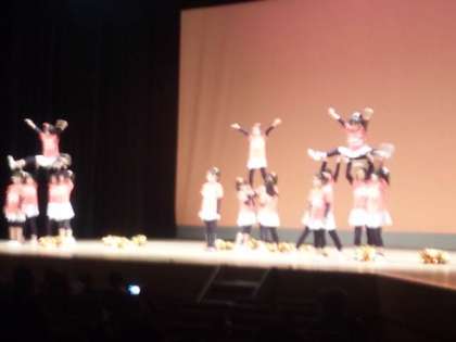 最初は,チアリーディング部がポンポンを使い,テンポのよい曲で元気に演技をしました。