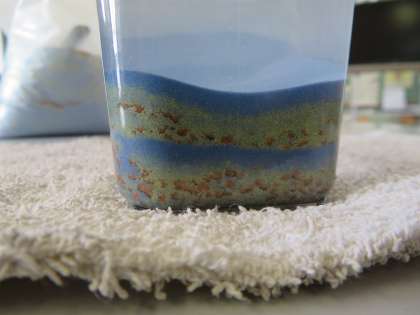 れき,砂,泥を模したものをといから流すと,下に層になって溜まっていくことが分かりました。また,流した回数も層をみたら分かるということに気づきました。
